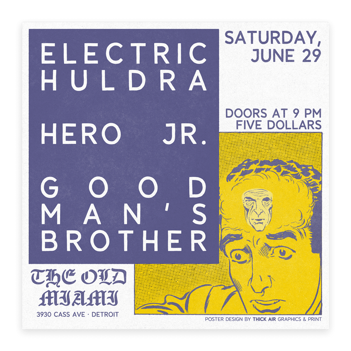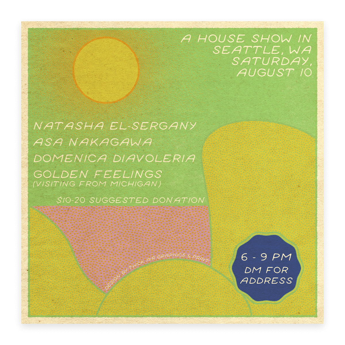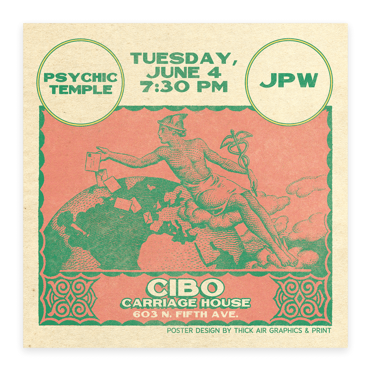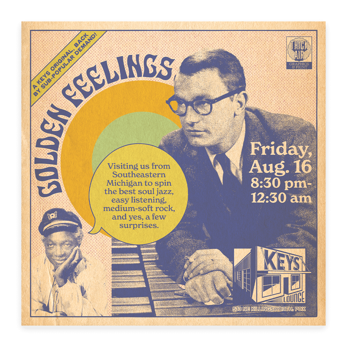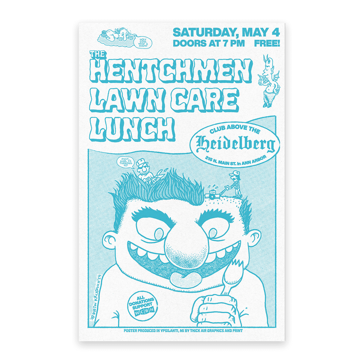 After shuttering at the onset of COVID lockdowns, in 2023 I started to use the moniker to design and produce posters, stickers, buttons, t-shirts, and the like for the broader underground music and arts community. As of winter 2025, the future of using Thick Air instead of my own name is… well, up in the air.