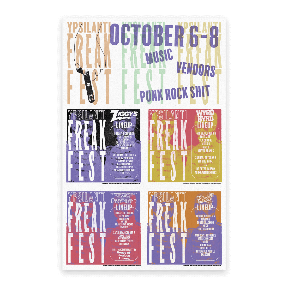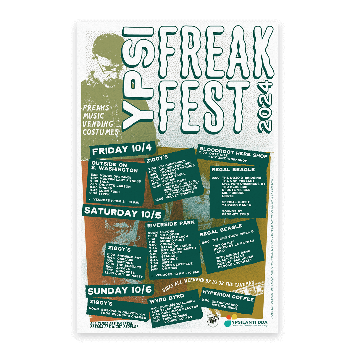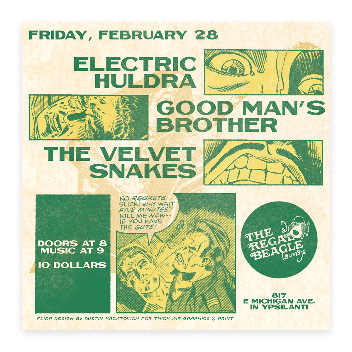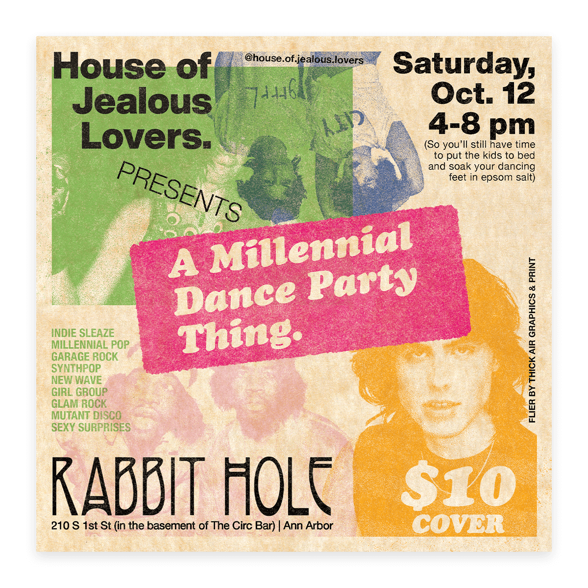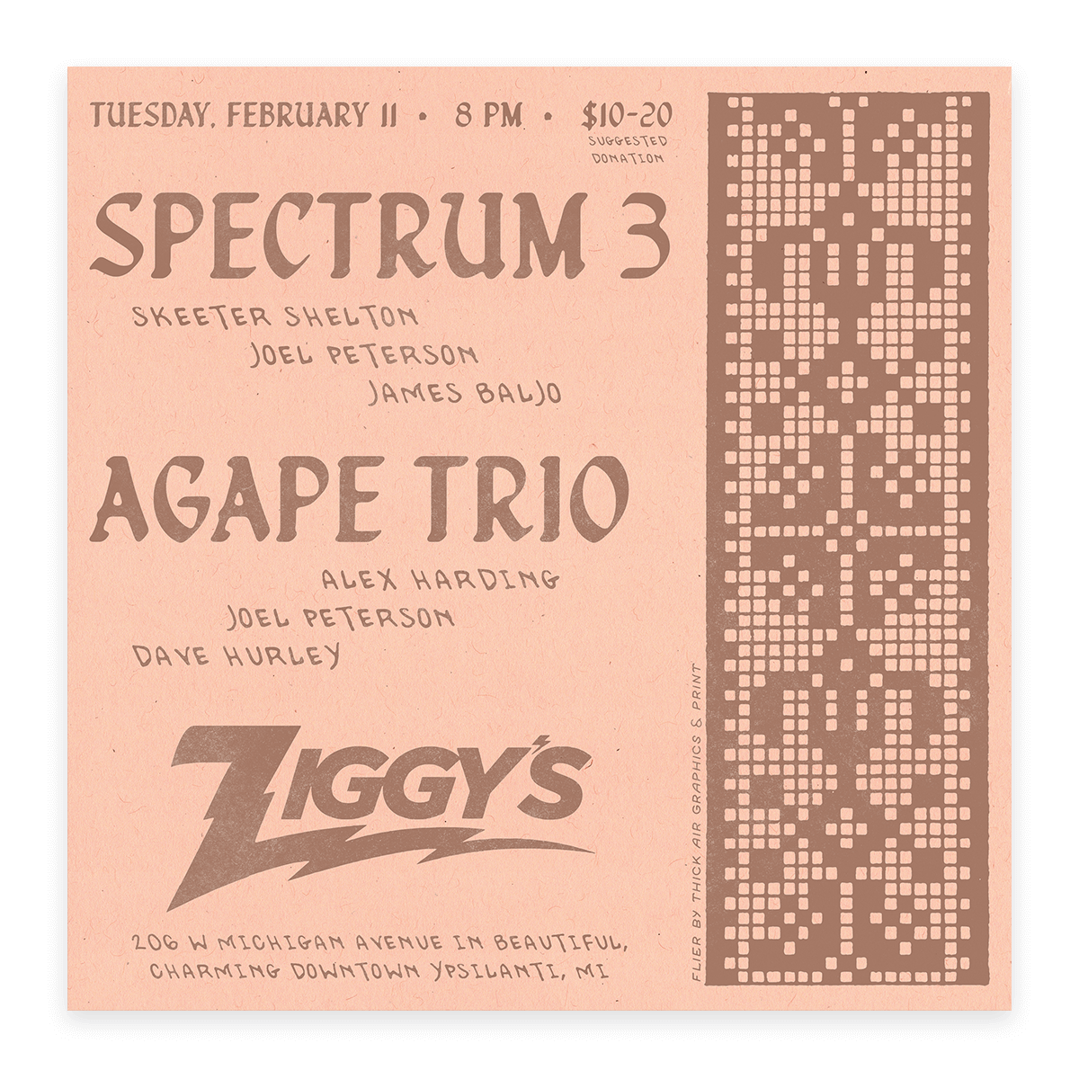 After shuttering at the onset of COVID lockdowns, in 2023 I started to use the moniker to design and produce posters, stickers, buttons, t-shirts, and the like for the broader underground music and arts community. As of winter 2025, the future of using Thick Air instead of my own name is… well, up in the air.